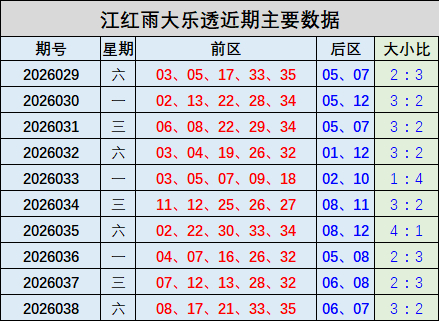 039期江红雨大乐透预测奖号:大小比参考